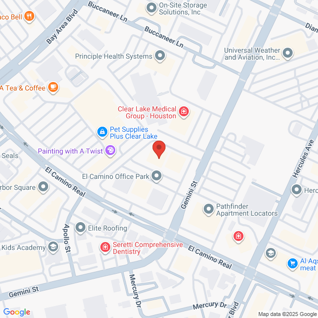 Location: We are part of 5 white business professional buildings located at the intersection of Gemini and El Camino Real. 17043 building number on front of building. Parking lot entrance to building from the Gemini Street side. Parking located at the front and rear entrance to the building. 2nd floor, directly left when you exit the elevators.